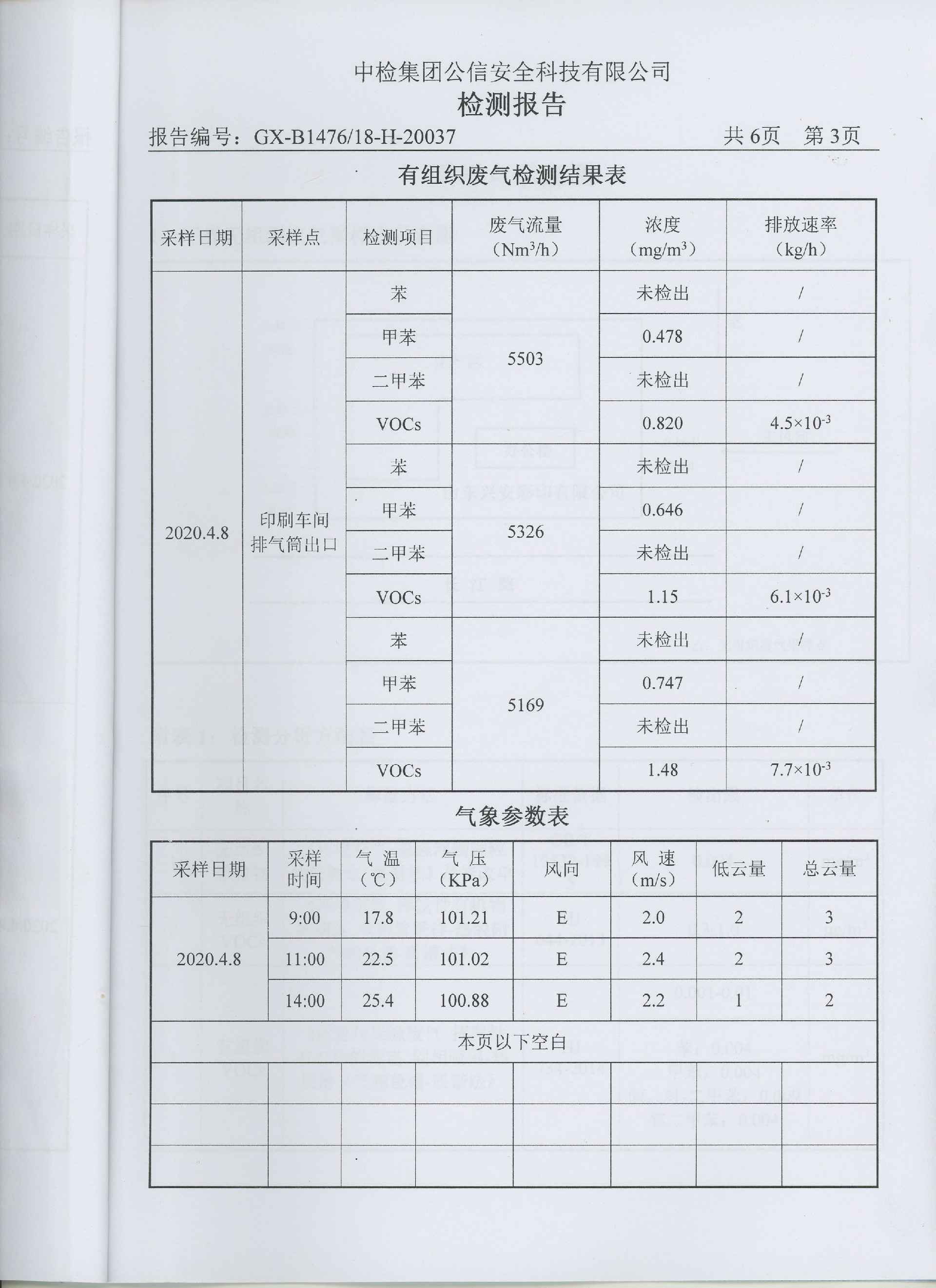 长春天泽无人机研发公司有限公司一直把环保治理工作作为企业发展重中之重,根据市区生态环境保护局要求于2017年8月份率先上了Ⅴ0Cs环保处理设备,印刷车间废气通过收集风管,进入过滤器,将空气颗粒物过滤掉,经过光催化氧化分解剩余有机废气,同时由离子氧化进一步处理残余废气,将有机废气氧化成二氧化碳和水,通过烟囱引高排。2018年2月经有关环保专家验收合格,有机挥发物排放达标。每季度都委托枣庄公信安全科技公司对公司有机挥发物废气各项指标进行检测,下图为最新监测数据: